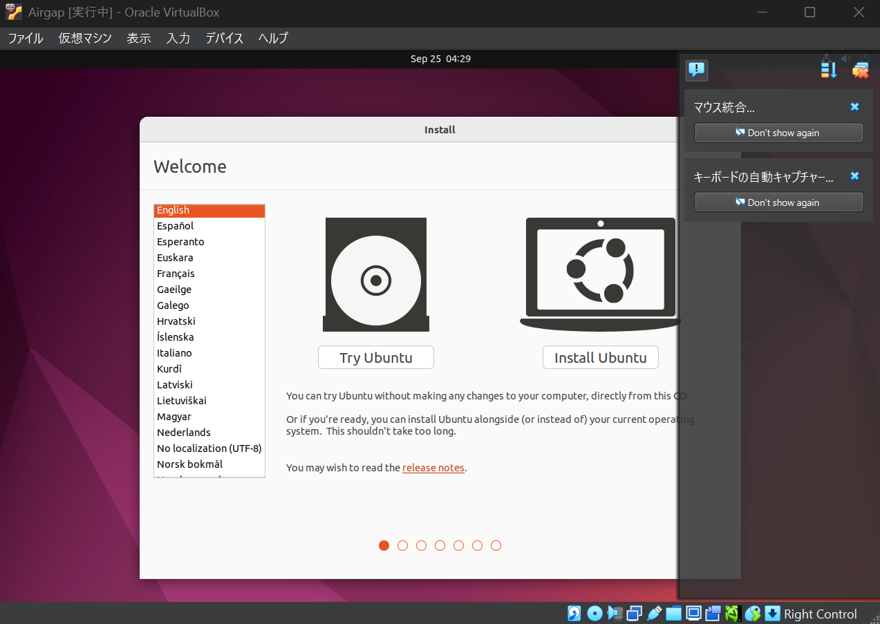 6-2. 少し待つと以下の画面が表示されますので、左のリストから「日本語」を選択してください。日本語を選択すると、UIが日本語に変わります。
