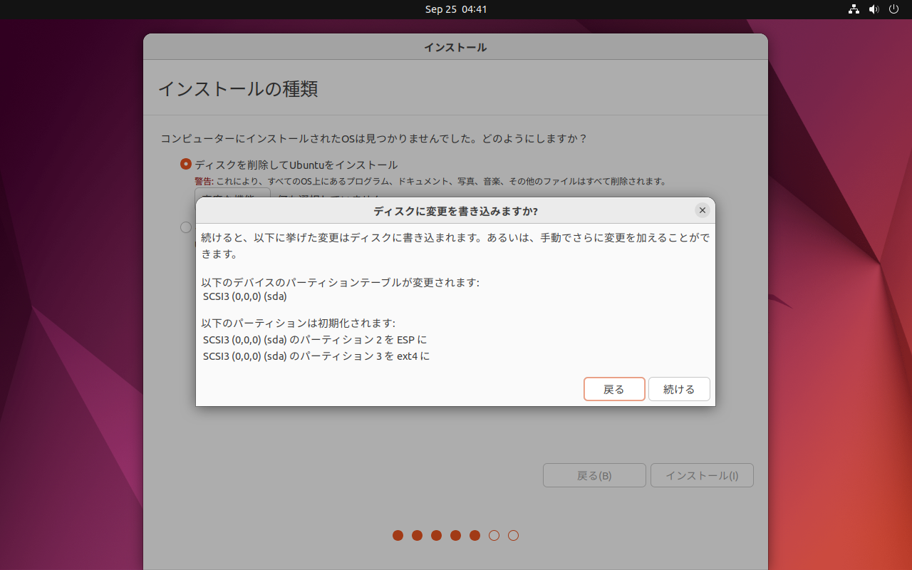 6-3. 以下の画面で「Ubuntuをインストール」を押下してください。
