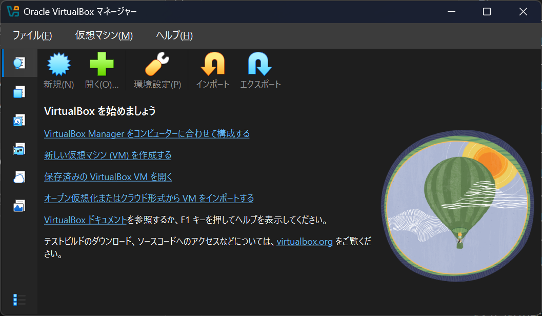 3-11. VirtualBox の管理画面が起動すれば、インストール完了です。