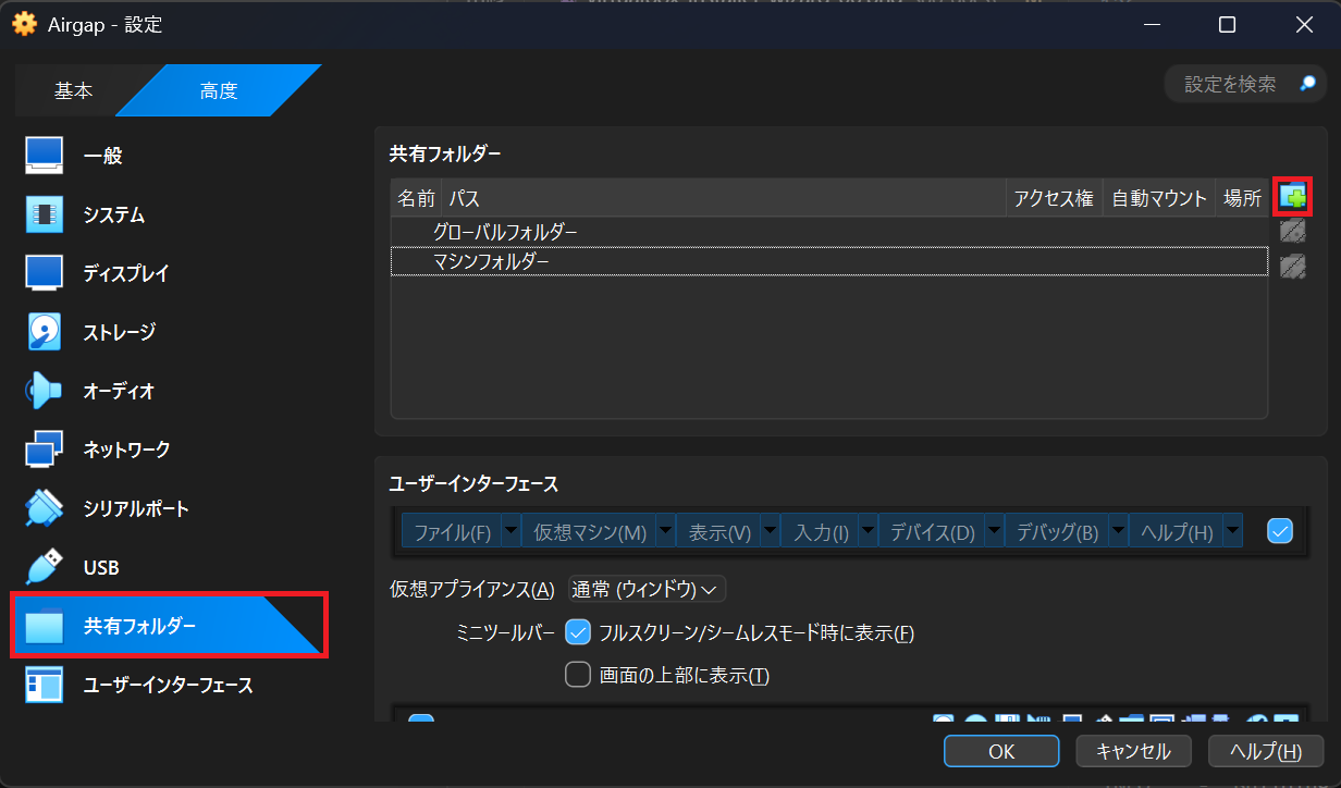 | フォルダーパス | Windows 上に作成した任意のディレクトリを選択 |